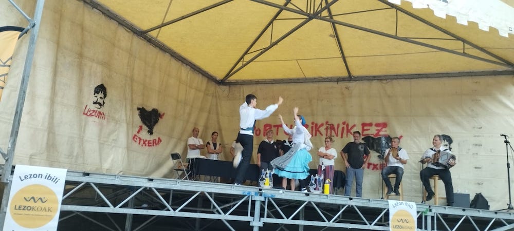Larunbatean, XII. Muxiko Egunaz gain, dantza solte txapelketa egin zuten Gurutze Santuaren plazan. Herriko dantzariak, fin beste behin.