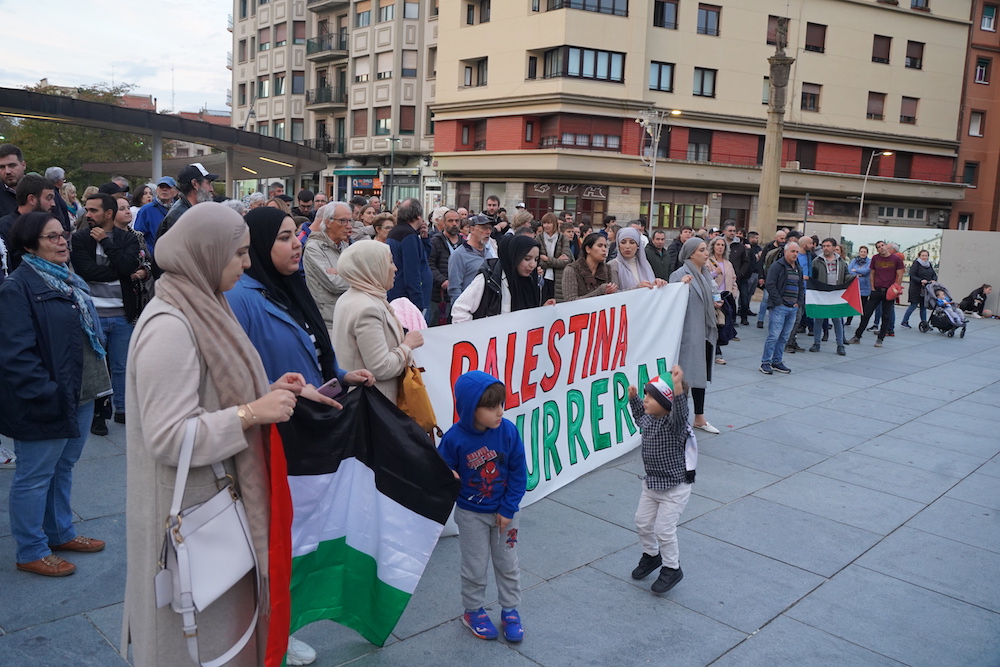 Palestinaren aldeko elkarretaratzea Errenteria-Oreretan Urriaren 7tik 30era 8.525 palestinar hil ditu Israelgo Estatuak; horietatik 3.542 haurrak. Save The Children erakundeak emandako datuen arabera, 2019tik mundu osoan izandako gatazka guztietan denera baino haur gehiago hogeita hiru egunean. Zaurituak, 21.000etik gora. Israelen eraso bortitzak jarraitzen du eta airetik jaurtitako lehergailuei, fosforo zuria barne, lurretik egindako erasoaldia gehitu behar zaio orain.