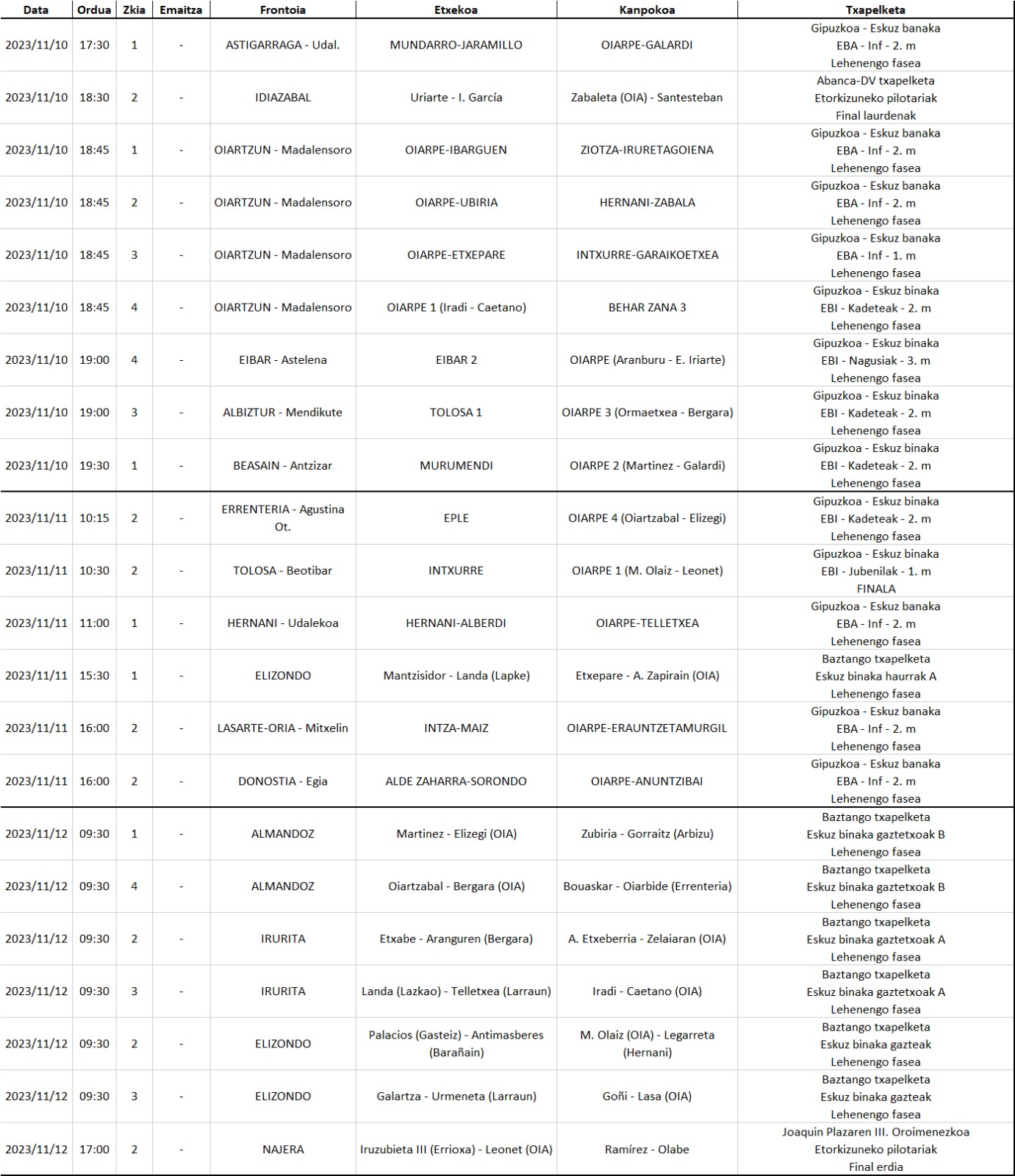 Oiarpe eta Txosten asteburuko partidak (2023-11-10)