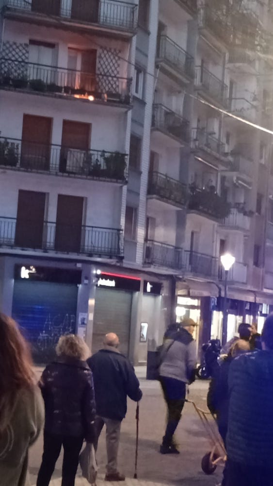Jende ugari zegoen kalean sua piztu denean etxebizitza baten balkoian. Sua piztu da Iztietako etxebizitza bateko balkoi batean. Arratsaldeko 18:00ak aldera piztu da sua Donostia kaleko etxebizitza batean eta ikusmin handia sortu du, une horretan jende asko zegoelako ondoan dagoen Diputazio plazan zein bertako tabernetako terrazetan.