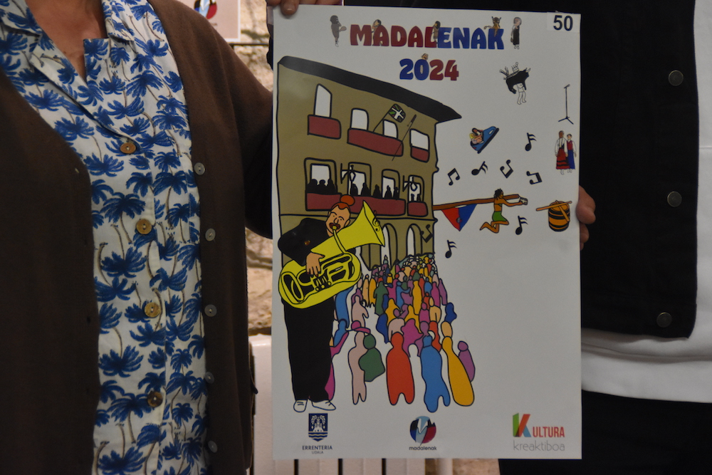 Epaimahaikideak kartel irabazleekin. Erdian, Blanco Egozkozabalen lana. Angel Blanco Egoskozabal artista errenteriarraren kartela izan da madalenetako kartel lehiaketaren irabazlea. Arkupetik lanak ilustratuko du jaietako egitaraua, baita kartelak ere. Ez da lehiaketa irabazi duen lehen aldia, eta aurten gainera, Iruñeko sanferminetako irudia ere bere beste lan batek jarriko dio.