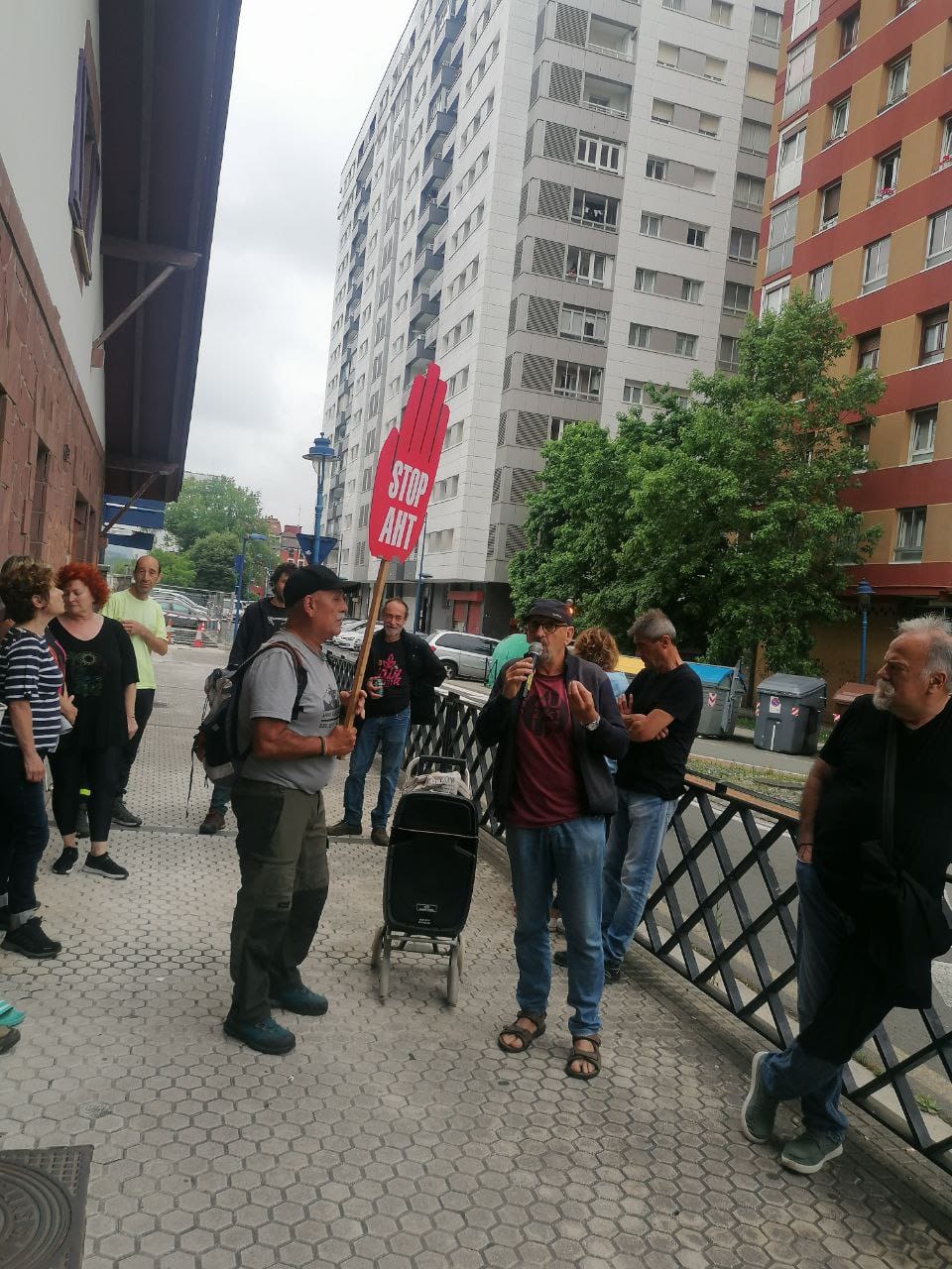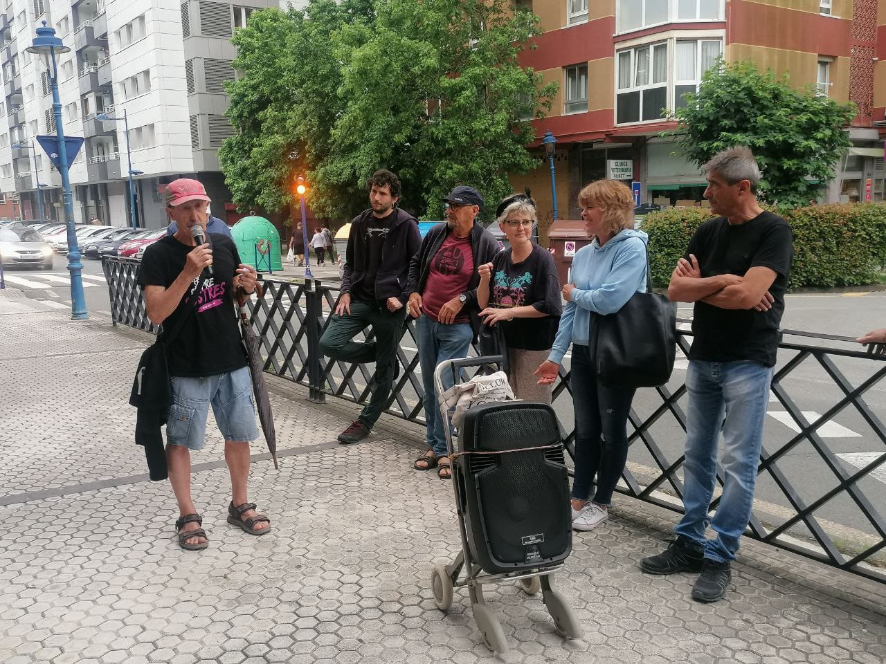 - Aldiriko trenen zerbitzuaren murrizketa salatzeko elkarretaratzea Renfe geltoki kanpoan. Argazkia: Oarso-Donostialdeko AHTrik ez