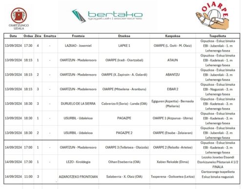 Hainbat partida jokatuko ditu Oiarpek gaur eta bihar