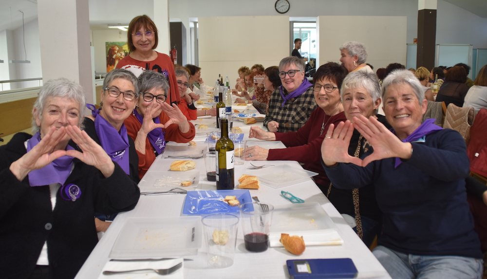 300 emakume bildu dira Merkatuzarren mahaiaren bueltara, auzoetako elkarteetako emakumeen bazkarian, Martxoaren 7aren bezperan.