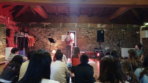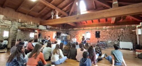 Hilaren 5ean elkartu ziren Oiartzungo dorretxean DBH 1 eta 2ko 11 gazte eta DBH 3 eta 4ko beste 10-11, eta ezagutza jolasa egin zuten lehenbizi. Tailerrak egin zituzten gero, eta horretarako bertaratutako gazteak bi taldetan banatu zituzten. Hiru tailer egin zituzten orotara, eta eguerdi partean berriz elkartu ziren denak landu zutena elkarbanatzeko. Are, Mitxelenak kontatu du batzuk ahoz goran irakurtzera ere animatu zirela. Arratsalderako bisita berezi bat zuten antolatuta, Olatz Salvador abeslari eta musikariarena hain zuzen, eta bere sormen prozesuaz, abestiez eta ibilbideaz galdetu zioten gazteek. “Giro goxo eta ederra sortu zen”, gehitu du Mitxelenak.
