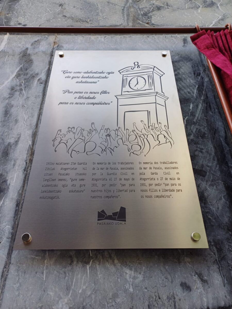 Gaur 94 urte bete dira Guardia Zibilak Ategorrietan Pasaiako portuko zazpi langile manifestazio batean hil zituenetik. Haien omenezko plaka oroigarri bat jarri dute alkateordetzaren fatxadan.