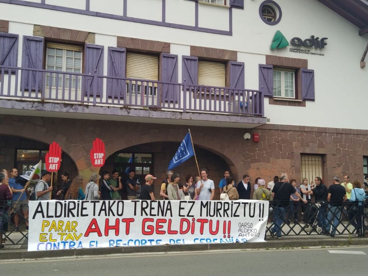 Aurretik mugimenduak egindako elkarretaratze baten artxiboko irudia. Oarsoaldeko AHT Gelditu herri mugimenduak elkarretaratzera deitu herritarrak hilaren 13rako (ostirala). Haien iritziz AHTa Oarso-Bidasotik pasa dadin egiten ari diren lanak aldiriko trenen zerbitzuan eragin oso ezkorra izaten ari dira: “Zerbitzuak murrizketak izan ditu, kalitateak beherakada izan du, etenaldiak pairatzen ari gara. Egoera horrek eragin bereziki kaltegarria du ikasle, emakume, langile, pertsona arrazaliazatu eta adinekoetan”. Hala, aldirietako trenak dituen arazoak salatzeko, nahiz AHTa egiteko lanen dirua gastu sozialetara bidera dadin eskatzeko egingo dute elkarretaratzea: hilaren 13ko 18:00etan izango da Lezo-Errenteria geltokiaren parean.