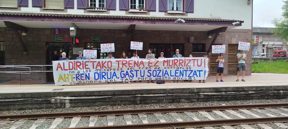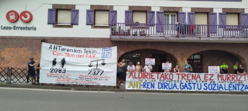 Oarsoaldeko AHT Gelditu herri mugimenduak elkarretaratzea egin zuen atzo arratsaldean Lezo – Errenteria tren geltokian AHTa Oarso-Bidasotik pasa dadin egiten ari diren lanak aldiriko trenen zerbitzuan eragin ezkorra izaten ari direla iritzita. Elkarretaratzean, bestalde, aldirietako trenak dituzten arazoak salatzeaz gain, AHTa egiteko lanen dirua gastu sozialetara bideratzeko eskatu zuten.
