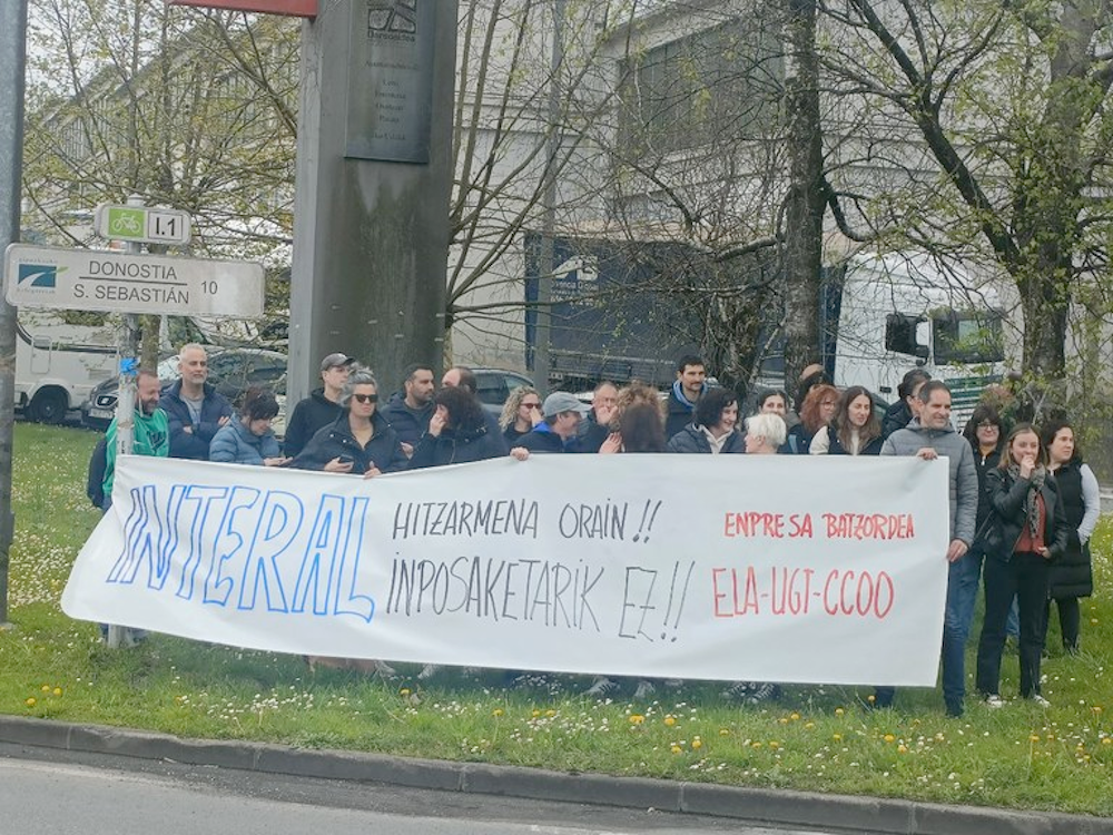 Hitzarmenaren alde Interaleko langileek martxoan egindako elkarretaratzearen irudia. Lezoko Interal enpresak 85 langile kaleratu nahi dituela adierazi du bertako enpresa batzordeak, enplegua erregulatzeko espediente bidez; batzorde horretan bosna ordezkari dituzte ELA eta UGT sindikatuek, eta hiru CCOOk. Enpresak hilaren 16an jakinarazi zien 85 langileei kaleratzeko asmoa.