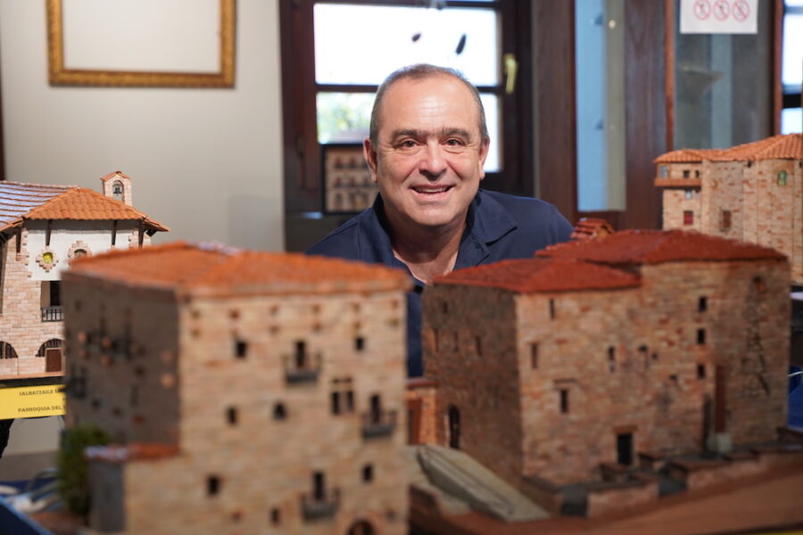 Udalerriko eraikin esanguratsuenen erreplikak egin ditu Juan Mari Arrillaga Lujanbiok, urteak eman ditu harri ñimiñoak josten eta detailerik txikiena ere leial jasotzen bere maketetan.
