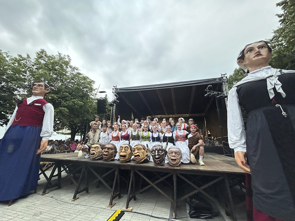 Herriko festen ikur diren asko ere izan ziren emanaldian. Tartean, Maialen eta Xanti erraldoiak, nahiz buruhandiak. Nola ez, Errenteriako dianarekin bukatu zen txistularien pregoi handia.