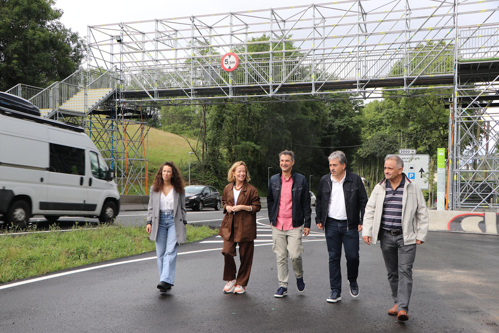 Eider Mendoza Gipuzkoako ahaldun nagusiak nahiz Mikel Arruti Lezoko alkateak eta Eneritz Arruti zinegotziak bilera egin dute gaur, diputatu nagusia herrialdeko alkate eta agintariekin egiten ari den batzarraldien barrukoa. Besteak beste, Gaintxurizketa auzoa erdibitzen duen Gi-636 errepideaz, eta han oinezkoen segurtasuna eta irisgarritasuna hobetzeko neurriez aritu dira. Batzartu ondoren auzora bisita egin dute aldundiko nahiz udaleko hautetsiek, hango lanak ikuskatu eta adierazpenak egiteko. Jada jarrita eta erabilgarri dago errepidea altueratik gurutzatzeko aldamio egitura duen oinezkoentzako behin-behineko pasabidea; behin betikoa 2026an zehar lizitatuko dela jakinarazi du Mendozak, beraz, hilabete dezentetan egitura hori mantenduko da betirako izango dena egin arte.