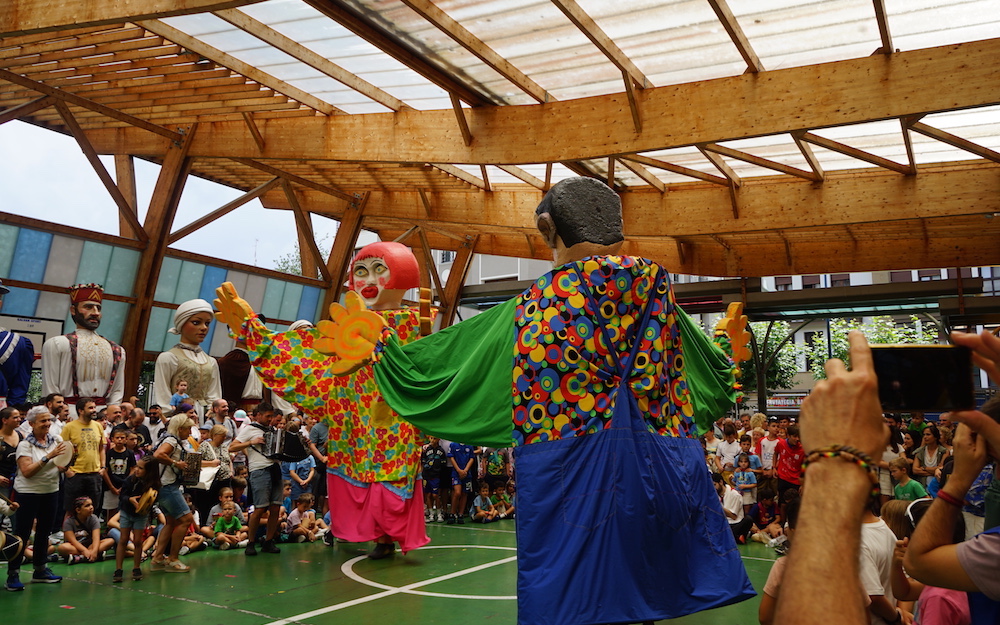 Koldo Mitxelena plazan elkartu dira lehenbizi denak; bai erraldoiak, bai buruhandiak, haurrak, gazteak, helduak…. Oro har, esan daiteke topaketa horrek Euskal Herriko txoko ezberdinetako jendea erakarri duela, hamarna herritako erraldoi eta buruhandiak elkartu baitira Errenterian.
