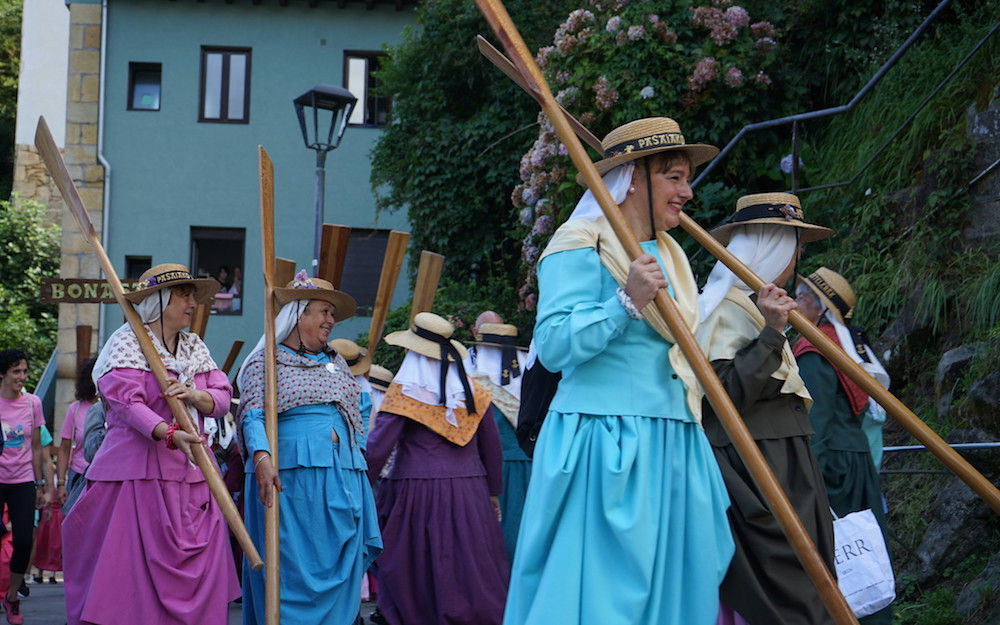 Irribarretsu, alai eta saltoka egin dute bidea, jaiei amaiera ezin hobea emateko prest. Desfilea Santiago plazan bukatu dute, eta 12:ooetan hasi dira ontziratzen. Estropada 12:30ean hasi da.