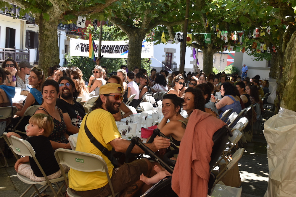 Sagardoak gosea piztuta, bazkalordua iritsi zaie herritarrei. 14:00etarako Madalensoroko frontoira gerturatu dira erretiratuak, Gazte Izanak elkartearekin laguntzarekin, udalak erretiratuen bazkaria antolatu baitu.