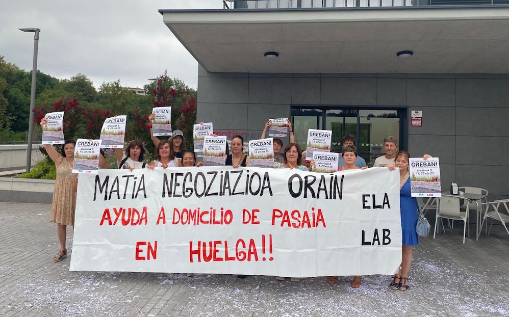 Pasaiako Etxez Etxeko langileek tinko jarraitzen dute borrokan. Uztailean lan hitzarmenaren negoziazioa desblokeatzeko greba egunak iragarri zituzten, eta bihar (hilak 20) izango dute laugarren greba eguna (udaletxean eta enpresan mobilizatuko dira). LAB eta ELA sindikatuen babesa dute langileek.