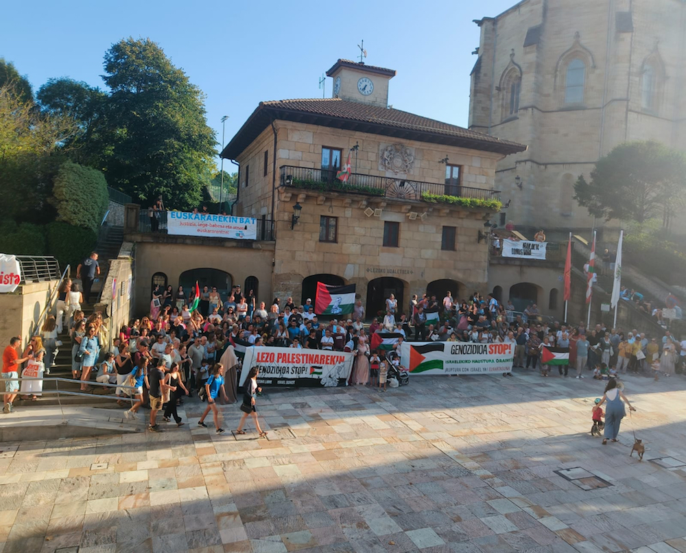 Palestinako genozidioaren kontrako ahotsa mundura zabalduko du Lezok. Hurbilean eta urrunean izaten ari diren elkartasun eta salaketa adierazpideetatik beste bat izango da herrikoa. Tanta bat gehiago. «Horrelako mobilizazio bat antolatzeko asmoarekin denbora bat bageneraman. Palestinan gaur egun gertatzen ari denaren aurrean, nola ospatu behar ditugu jaiak besterik gabe? Egia da bizitza aurrera doala. Ezin dugu gelditu. Dantza egingo dugu festetan, parranda… Baina hain da larria Palestinan gertatzen ari dena!». Hitzok Iñigo Esnaolarenak dira, Lezoko Sortuko kidea.