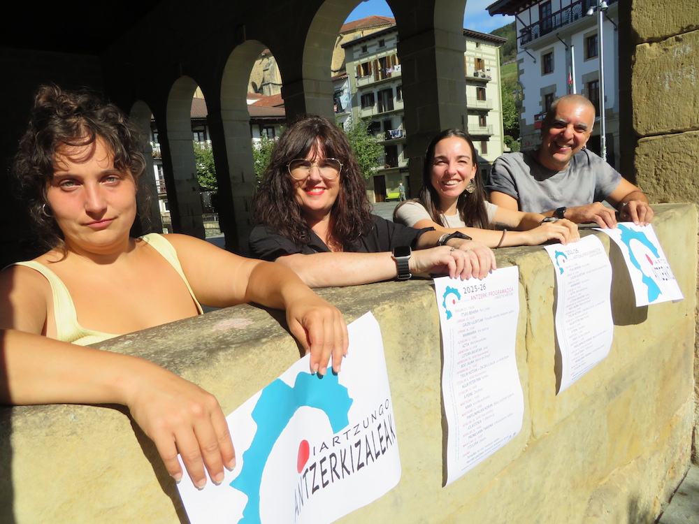 Maite Aizpurua (EHAZE), Lur Korta (Antzerkizaleak), Garazi Urdanpilleta (Kultura ziinegotzia) eta Oier Guillan (Antzerkizaleak), gaurko aurkezpenean. Antzerki eszena du Oiartzunek. Askotariko programazioa dago, publiko fidel eta hezia du herriak, eta gainera antzerkigintzan ari direnen kopurua oso handia da. Gaur eman dute ikasturteko programazioaren eta hainbat berritasunen gaineko informazioa Oiartzungo Antzerkizaleek, Oiartzungo Udalak eta Euskal Herriko Antzerkizale Elkarteko (EHAZE) kideek agerraldi bidez. Mamitsu dator 2025-2026 sasoia. Landetxeko oholtza batik bat ederki baliatuko dute.