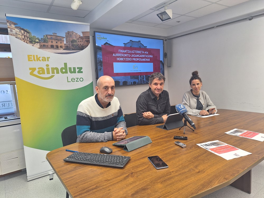 Iker Salaberria, Mikel Arruti eta Eneritz Arruti gobernukideak, gaurko agerraldian. Lezoko Udalak bizi duen egoera ekonomikoaren gaineko azalpenak eman ditu gaur udal gobernu taldeak. Kritikoa ez, baina kezkatzeko modukoa dela azaldu du Mikel Arruti alkateak, “ez dago egoera onenean”. Hori esateko udal kanpoko aholkularitza batek egindako ikerketa lanean oinarritu dira gobernukideak, Betean enpresak egin du lan hori. “Alkatetzan sartu ginenean eta lehen aurrekontuak egitea egokitu zitzaigunean zailtasunak genituela ikusi genuen, gehienbat inbertsio eta mantenu ataletarako apenas gelditzen zelako dirurik. Orduan hasi ginen finantza arloan udalaren egoera zein zen aztertzen, kezka piztu zitzaigulako. Baina egokiago ikusi genuen kanpoko enpresa batek azterketa sakonagoa egitea. Betean enpresak egin du hori”. Besteak beste, udalaren auditoretza lanak egiten ditu Betean-ek, eta egindako ikerketa lana agindutakoaren lehen zatia da, sarrerei dagokiena. Hori oinarri, ondorioak atera ditu gobernu taldeak, eta hainbat neurri proposatu. Udalak dituen sarreren eta gastuen arteko aldea urtez urte handitzen ari da, diru soberakin geroz eta murritzagoa du, eta horrek inbertsioak nahiz mantenu lanak egiteko oztopoak dakartza.