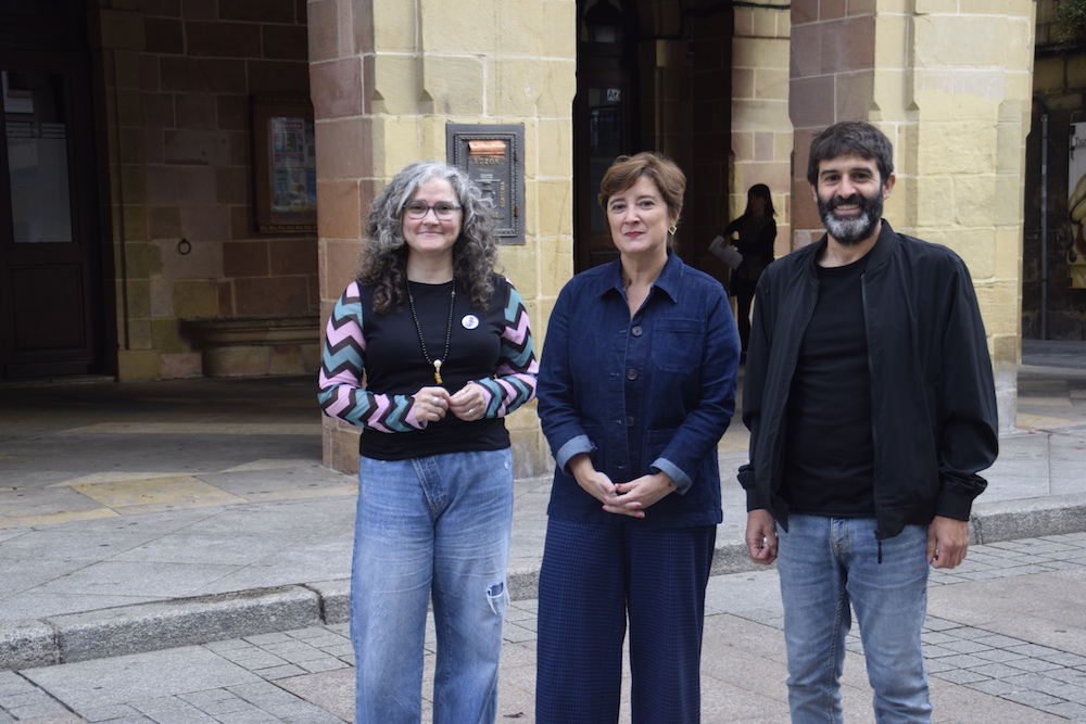 Aizpea Otaegi (erdian) Eneko del Amo eta Yoli Martinekin ordenantza fiskalen proposamena aurkezteko agerraldian. Datorren urteko aurrekontua prestatzeari begira gobernu taldeak ordenantza fiskalen proposamena aurkeztu gaur. Aizpea Otaegi alkateak, Eneko del Amo Ogasun zinegotziak eta Yoli Martin Ingurumen eta Iraunkortasun zinegotziak agerraldia egin dute gaur goizean proposamena aurkezteko. Otaegik azaldu du %2,4ko eguneratze orokorra dela proposatu dutena, “KPIaren batez besteko igoerari dagokiona”.