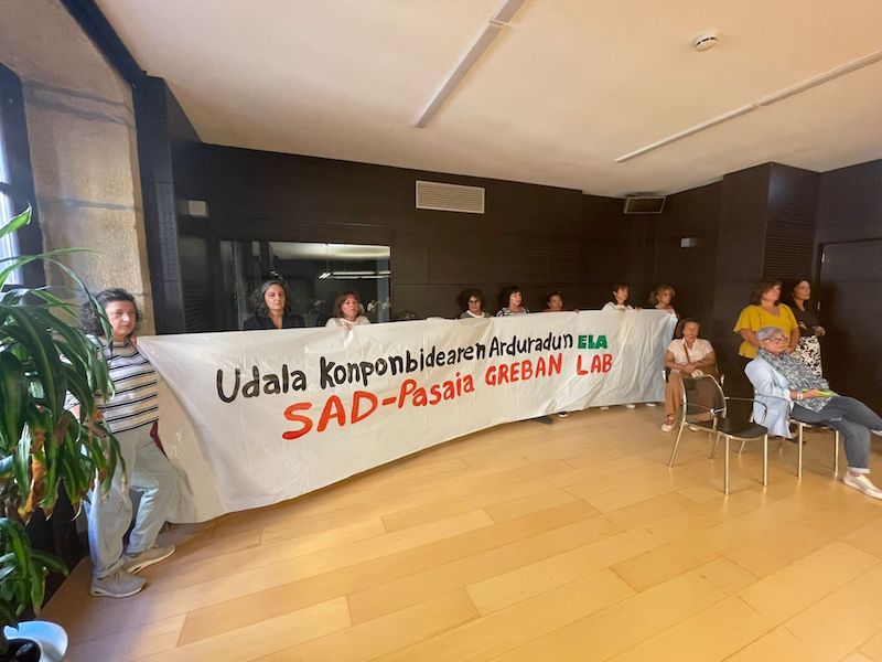 Etxez etxeko langileak, atzo, udalbatzarrean.ELA eta LAB sindikatuek bidalia Pasaiako etxez etxeko langileek Pasaiako Udalari gaian erabakiak har ditzala eskatu diote, eta zerbitzua publiko izan edo udalaren zuzeneko kudeaketa izan dezala. “Uste dugu nabarmena dela zerbitzuaren azpikontratazioa ez dela ona ez erabiltzaileentzat ezta zerbitzua ematen duten langileentzat ere”. Hala, bere garaian udalak hartu zuen “erabaki politikoarekin” atzera egin, eta enfasia jarri dute langileek publifikazioan. Egun greban dira Pasaiako etxez etxeko langileak, ELA eta LAB sindikatuek deituta. Irailaren hasi ziren borrokaldi mugagabearekin, aurretik ere hainbat lanuzte egin zituztelarik. Atzo, udalbatzarrera eraman zuten euren haserre eta konponbide gosea.