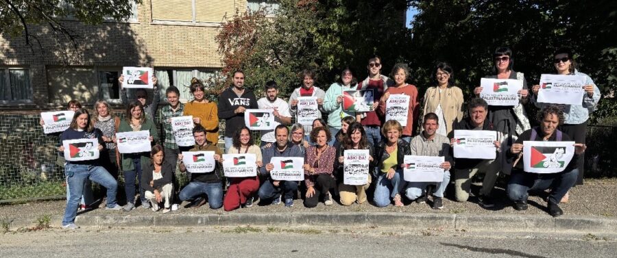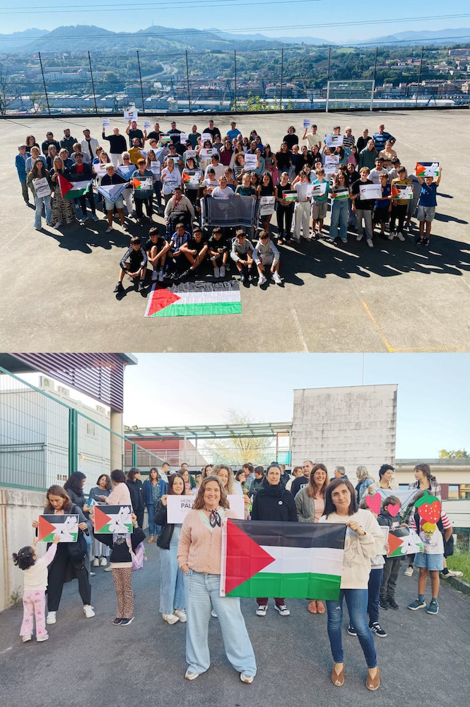 Ostegunero ari da zenbait ikastetxeetako hezkuntza komunitatea elkarretaratzeak egiten Palestinari elkartasuna adierazteko.