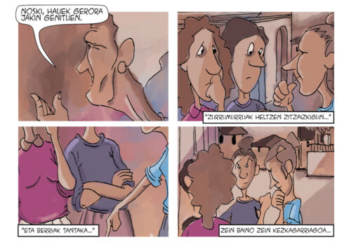 Komikiaren pasarte bat. Erabat markatu zuen 1936ko gerrak Euskal Herriko gizartea. Sufrimendua, errepresioa, zauri sendaezinak… milaka euskaldun izan ziren isilduak, zigortuak eta erailak. Oiartzunera 1936ko uztailaren 23an sartu ziren tropa frankistak. Irunera bidean zihoazela, Endarlatsako zubia lehertu eta posizio estrategikoak hartu zituzten milizianoek, eta horrenbestez, atzera itzuli eta Aritxulegitik sartu ziren tropak. Herriko familiek asko galdu zuten, jasandako errepresioa zela eta.