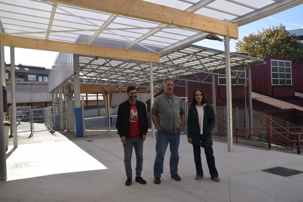 Egoera txarrean zegoen markesina kentzeaz aparte, estalki berri zabalagoa jarri du udalak, kanpoko espazio estali berri bat sortuz haurrek jolastu ahal izateko.