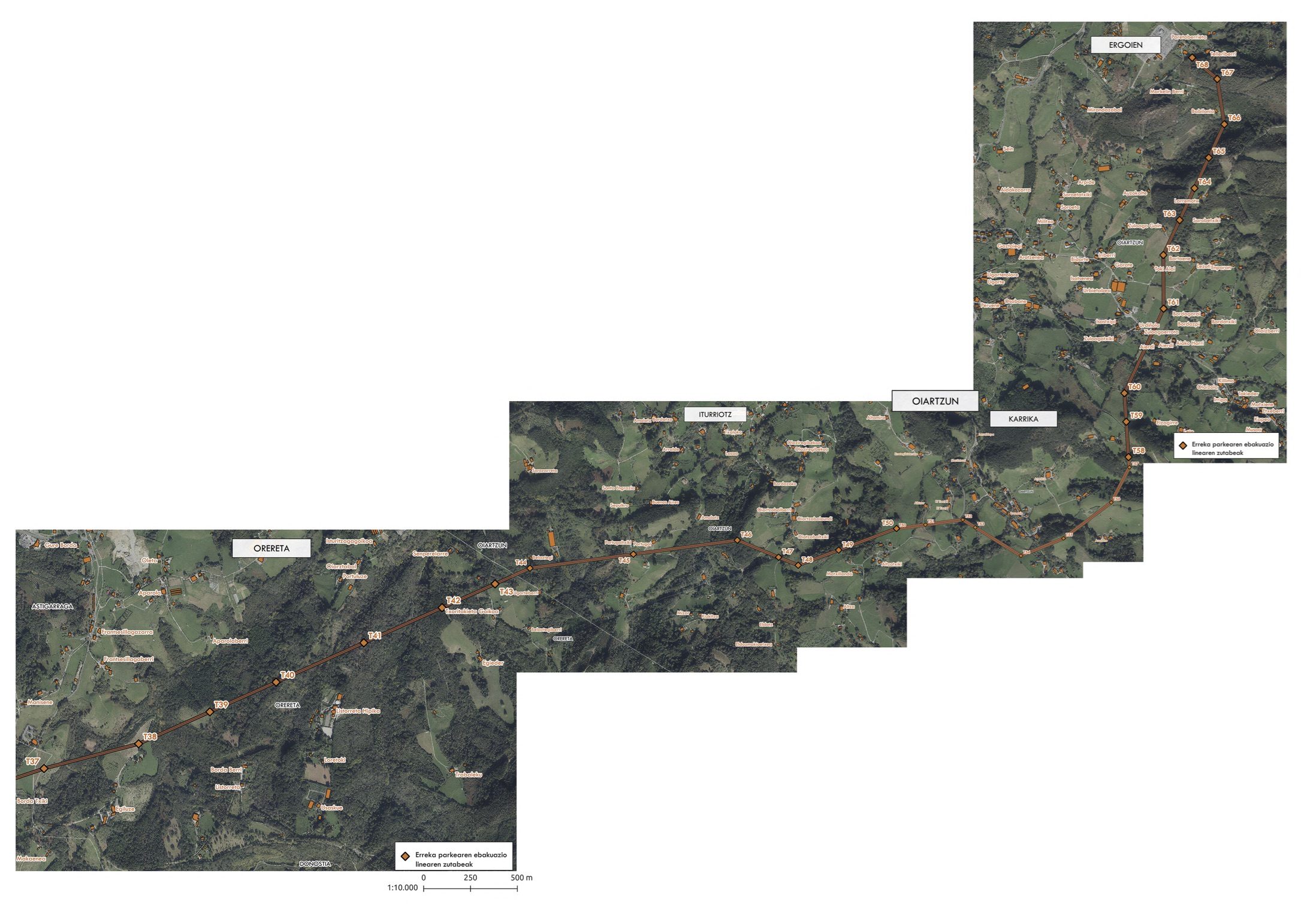 Erreka proiektuaren barruan, estazio eolikotik Gurutzeko Arkaleko azpiestaziora energia garraiatzeko lineak egingo lukeen bidea. KLIK EGIN IRUDIAN HANDITZEKO.