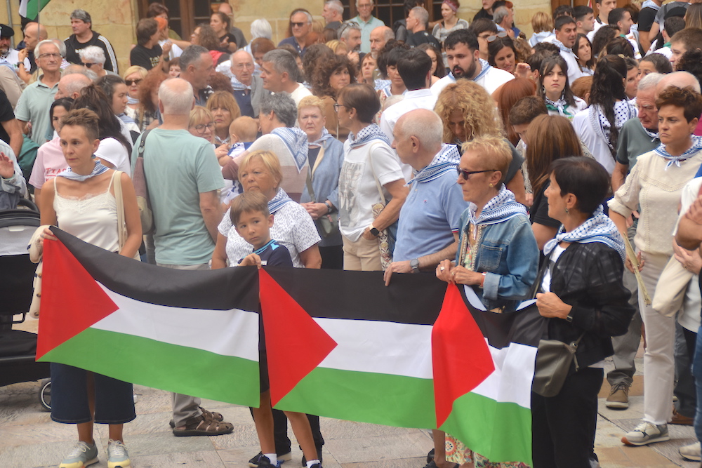 Arratsaldeko ekintza Gernika-Palestina Herri Ekimenak deitu du, 19:30erako. Udaletxearen aurrean burrunba edo elkarretaratze zaratatsua antolatu du eragileak Palestinarekin konpromisoa, genozidioa stop, hautsi Israelekin lelopean.