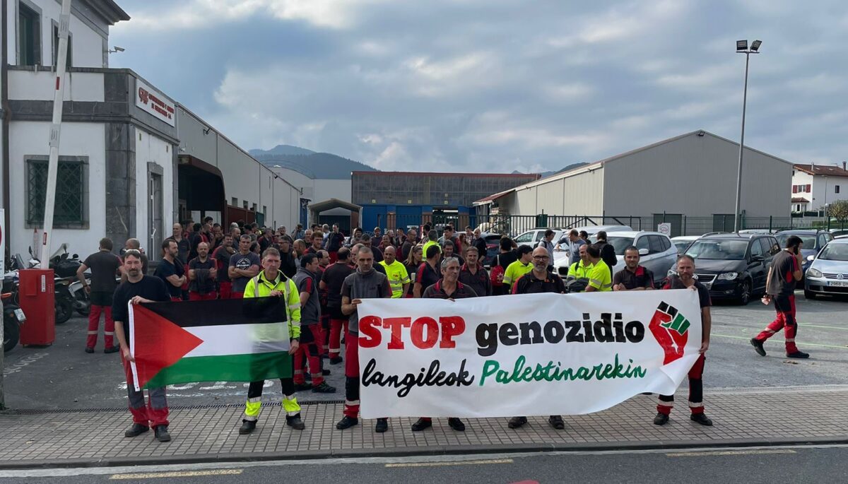 Irungo CAFeko langileen protesta gaur, Palestinaren alde. Lantegiak eta ikasgelak hutsik gelditu dira gaur. Mundu bat irten da kalera Palestinari elkartasuna adierazi eta genozidioarekin negozioa egiten ari diren enpresa eta erakundeei Israelekin harreman oro eten ditzaten eskatzeko. LAB, CCOO, UGT, ESK, Steilas, CGT/LKN, Solidari, Etxalde eta Hiruk hiru orduko lanuzteak dituzte deituta gaueko, goizeko eta arratsaldeko txandetan eta greba orokorra hezkuntzan.