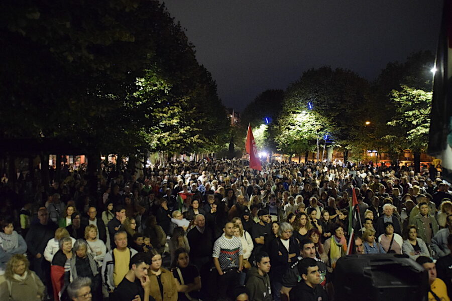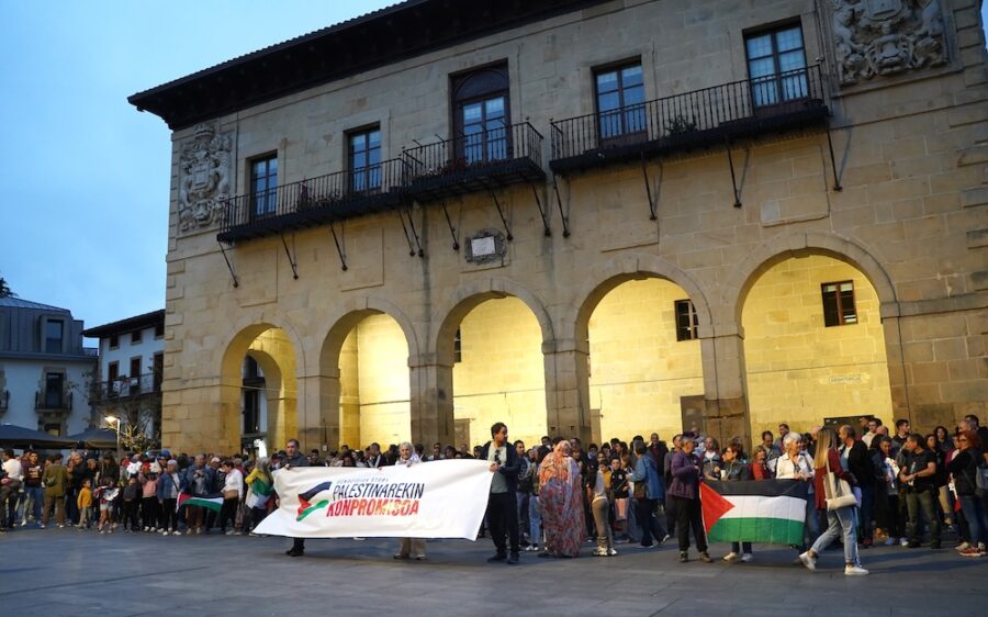 Dozenaka eta dozenaka lagun bildu dira Orereta Palestinarekin eta Gernika-Palestina dinamikek deituta, Palestinari babesa eman eta erakunde zein enpresei Israelekin harreman oro eten ditzaten exijitzeko.