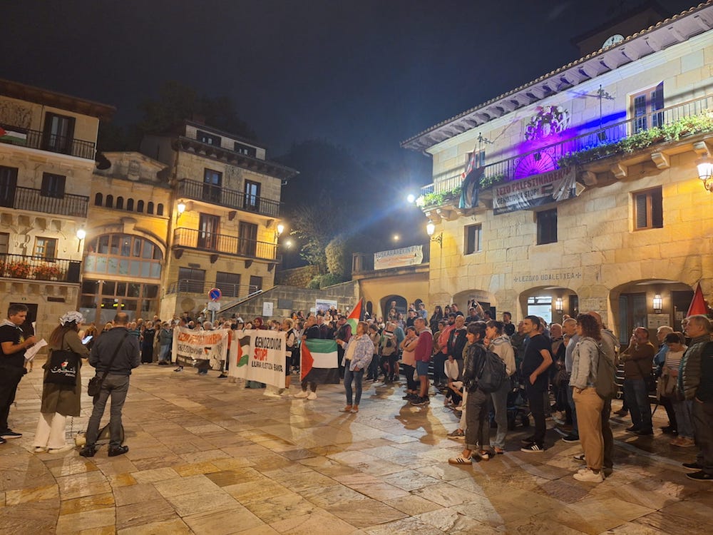 Atzo, urriak 15, Palestinaren babeserako eguna. Goizean lanuzteak izan ziren, eta arratsaldean mobilizazioak herrietan. Lezokoa Gernika-Palestina Herri Ekimenaren iniziatibaz egin zen. Hasiera batez elkarretaratze formatua pentsatua bazegoen ere, jende asko-askok deialdiarekin bat egin zuela ikusita manifestazioa egin zuten herritik. Isila. Gernika-Palestinarako Jon Maiak egindako olerkiak zabaldu zuen martxa.