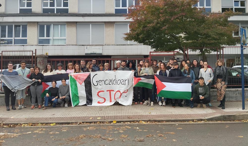 Koldo Mitxelena institutuko hezkuntza komunitateak elkarretaratzea egin du Palestinaren alde, ostegunero bezala.