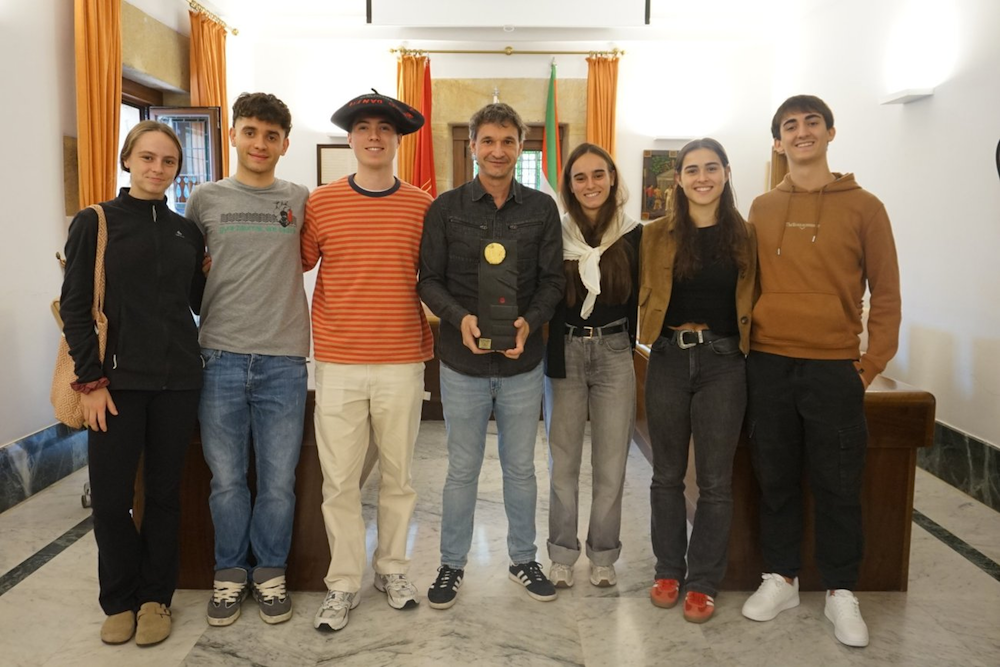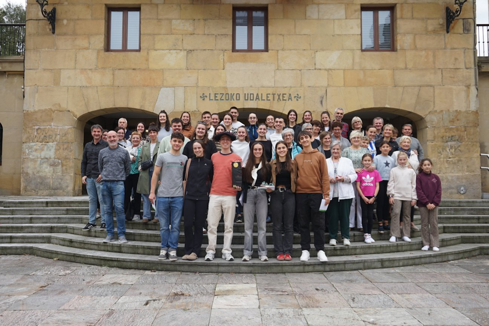 Herritarren pasabidearekin iritsi ziren udaletxera herriko dantzariak. Lezoar horien artean, senideak, lagunak, dantzariak… Behin Lezoko etxearen areto nagusian, Mikel Arruti alkatearen partetik esker eta goreste hitzak jaso zituzten herriko dantzariek. Hiru bikoteek gobernu taldeko kideen eskutik oroigarriak jaso zituzten. Baina garaikur batek izan zen distira berezia: Euskal Herriko Txapelketaren irabazleei ematen zaien Koldobika Jauregiren eskultura, urtebetez udaletxean izango dena.