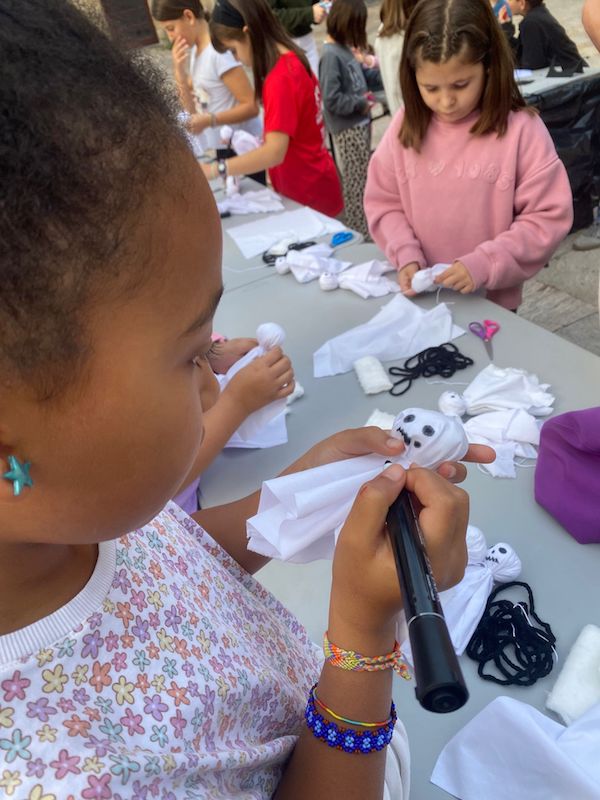 Lezoko gazteenek gaurko Gau Beltza girotzeko sormen tailerra egin zuten atzo Gurutze Santuaren plazan.