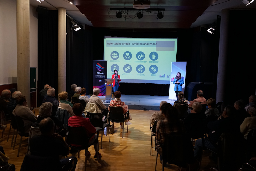 Diagnostikoaren aurkezpenko une bat.Pasaiako Udala Urtebete eta erdiko lanketaren ondoren, Pasaiako Udalak udalerriko pertsona nagusien beharrizanen diagnostikoa aurkeztu zuen astelehenean, Trintxerpeko alkateordetzan egindako ekitaldian. Diagnostiko horretan, egindako lanketa eta ikerketa lanaren ondorioz, 44 hobekuntza proposamen zehatz identifikatu dira, eta horiek aurrera eramateko Adinekoen Kontseilua sortuko dute. 2026ko urtarriletik aurrera kontsulta organo horretan hasiko dira udalerriko 65 pertsonen beharrizanetan nola eragin daitekeen erabakiak hartzen. Diagnostikoa osatzeko 85 pasaitarren partaidetza izan da; kontseiluan ere parte har dezakete herritarrek, eta izena eman nahi dutenek posta elektroniko mezua bidal dezakete, edo 943 34 40 34 telefono zenbakira deitu (910 luzapena). Herritarrekin batera Bizipoz kooperatibako dinamizatzaileak, udaleko alderdi teknikoko kideak eta udal gobernua izango dira organo horren partaide.