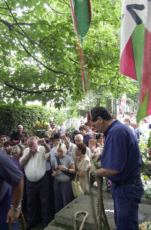Family and friends attend the burial of ETA member Olaia Kastresana on July 30, 2001, in the cemetery of Donostia, Basque Country.(Ander Gillenea / Bostok Photo)