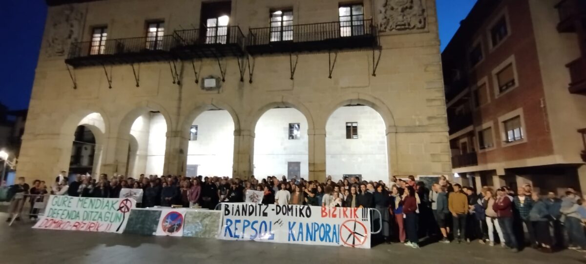 Gaurkoan Oiartzungo Doneztebe plazan egin dute agerraldia Domiko proiektua salatzeko. Inguruko mendi tontor eta muinoetan 200 metroko altuerako aerosorgailuak eraikitzeaz gain, Oarsoaldea eta inguruko herrietan 30 kilometro baino gehiagoko goi tentsio linea elektriko zein pista berriak eraiki nahi dituzte, eta berau salatzeko elkartu dira.