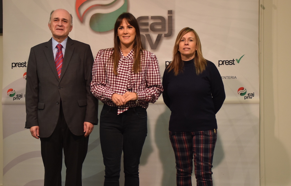 Elixabete Murua bozeramaile jeltzalea erdian, Luis Mari Oiarbide eta Jaione Francorekin. Aurrekontu proiektuari zuzenketa sorta aurkeztu dio EAJk. Zehazki, bost arlotan hamalau zuzenketa dira eta gaur eman du horren berri EAJk goizean egindako agerraldi bidez. Elixabete Murua Mindegia bozeramaleak azaldu du jeltzaleen zuzenketa sorta, eta horien helburua, gobernu taldeak 2026rako aurkeztutako udal aurrekontu proiektuari, “anbizio falta zuzentzea, aurten detektatutako beharrei erantzutea, eta datorren urteko kontuak udalerriarentzat benetako eraldatze tresna izango direla bermatzea”.
