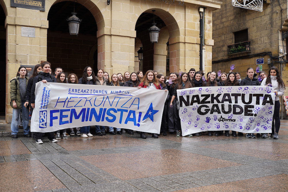 Ikamak antolatuta elkarretaratzea egin dute gaur goizean Oarso Bidasoko ikasleek. Ideia faxista eta erreakzionarioei antolakuntza feministaz erantzutera deitu dute.