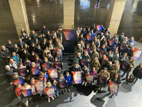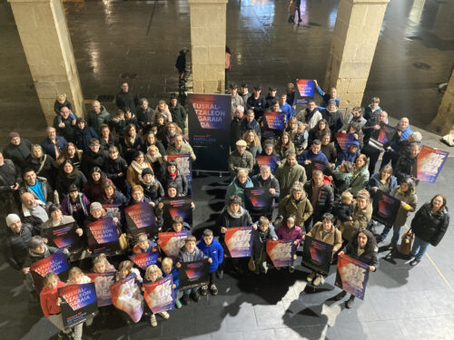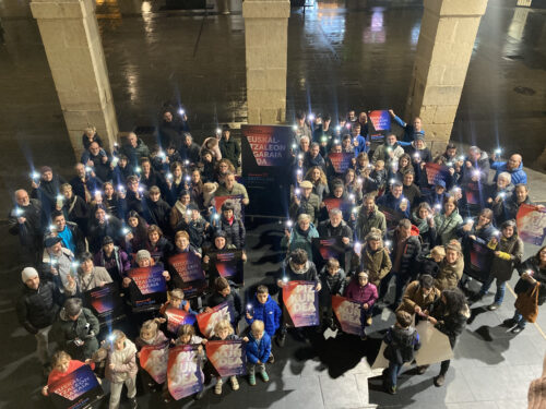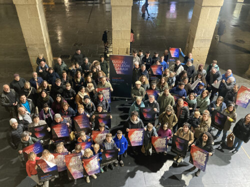 Argazkiaren hasi aurretik, baina, Julen Perez Ttur tturreko kideak adierazpen bat irakurri zuen, eta aipatu zuen azken hamarkadetan zehar egindako ahalegin kolektiboari esker euskararen biziberritze prozesuak “aurrerapen handiak” izan dituela, baina asko direla susperraldi aro hau eten denaren eta atzeraldia etor daitekeen zantzuak.