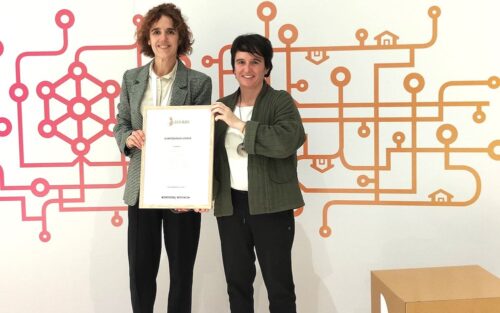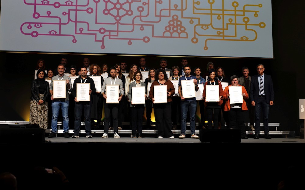 Atzo egin zuten ziurtagirien banaketa Gasteizen, eta han izan ziren Joana Mendiburu alkatea eta Aiako Harria Gaztelumendi Hizkuntz normalizaziorako zinegotzia, udalaren izenean saria jasotzen.