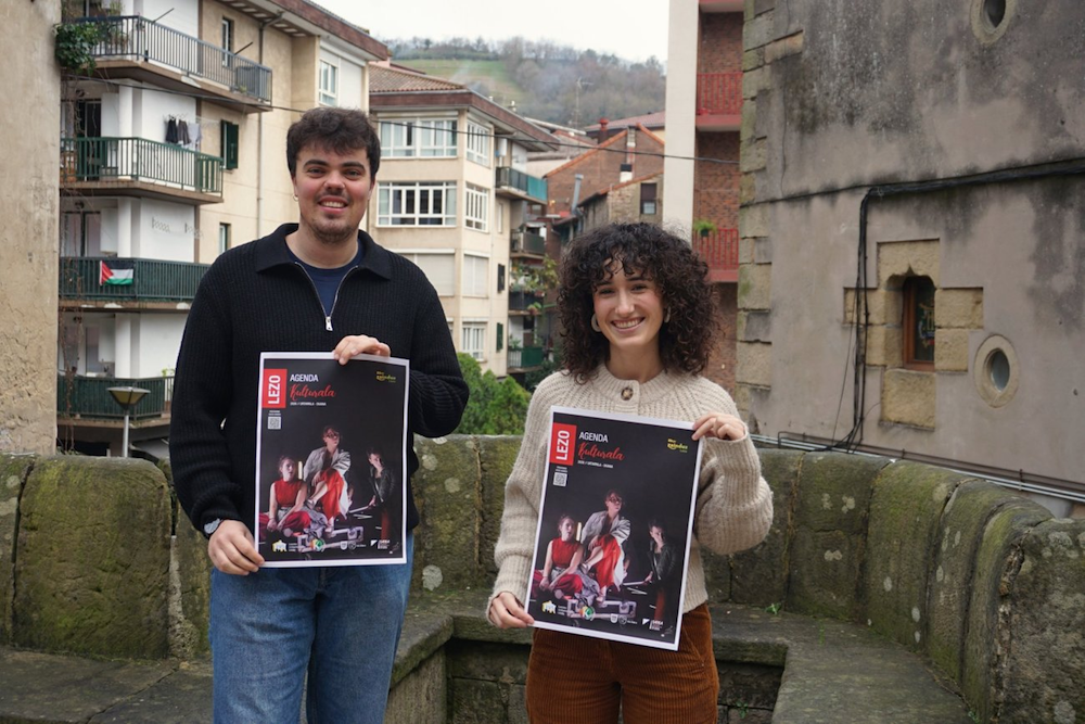 Aitzol Saizar zinegotzia eta Ainhoa Salaberria teknikaria, kultur programazioaren berri emateko agerraldian. Urteko lehen erdian herrian Lezoko Udalak antolatu dituen kultur ekitaldien berri eman dute Aitzol Saizar Kultura zinegotziak eta Ainhoa Salaberria Kultura teknikariak. 2026eko lehen maldak goxoago egiteko 54 ekitaldi antolatu direla jakinarazi dute, haien izaera askotarikoa izango delarik. Gezala Auditoriumean izango dira jarduera gehientsuenak, baina Andreone Udal Liburutegiak, Tomas Garbizu Musika Eskolak eta herriko kaleek ere jasoko dituzte egitarau zabal horren barruko emanaldiak. Gehienak euskaraz direla zehaztu dute udal kultur arduradunek, eta gainera, herriko eragileen ekarpena handia izango dela. Horiek guztiak udalaren webgunean ikus daitezke, baita postontzi guztietara helduko den eskuorrian ere.