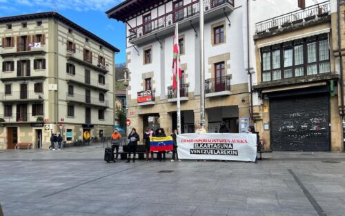 Zenbait eragilek deituta, elkarretaratzea egin dute Venezuelari babesa erakuste aldera. 'Eraso inperialistaren aurka, elkartasuna Venezuelarekin' lelopean elkartu dira.