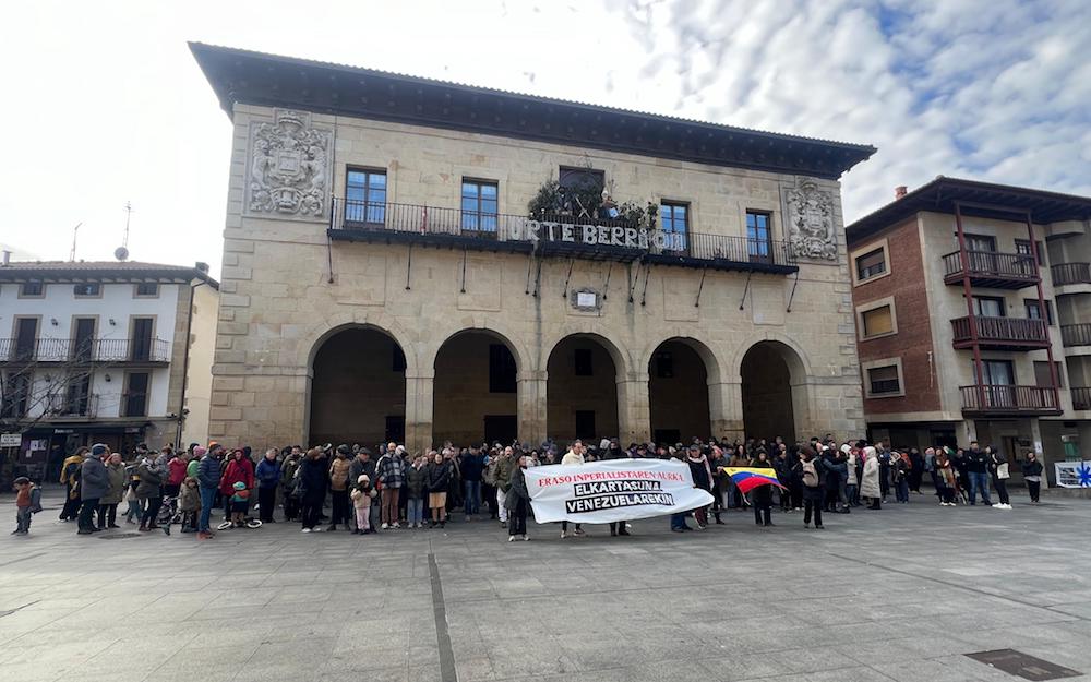Zenbait eragilek deituta, elkarretaratzea egin dute Venezuelari babesa erakuste aldera. 'Eraso inperialistaren aurka, elkartasuna Venezuelarekin' lelopean elkartu dira.