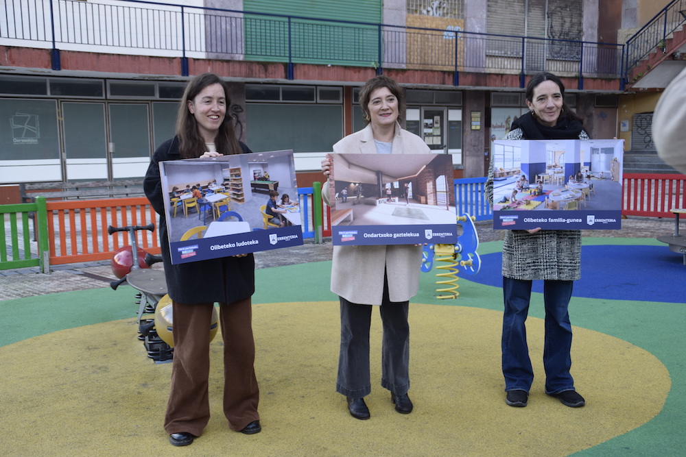 aizpea OAtegi alkatea, Naroa Zabala Gazteria zinegotzia eta Itsaso Cruz Hezkuntza zinegotziarekin batera. Haur, nerabe, gazte eta familiei eskainitako ekipamendu sarea indartu nahi du udalak, eta horretarako, hiru udal ekipamendu berrituko ditu. Hiru izango dira denera berrituko dituen ekipamenduak: Familia Gunea eta Erdiguneko Ludoteka Olibetera eramango ditu Merkatuzar eta Oarso eraikinetik lekualdatuta; eta Gazteleku berria egokituko du Ondartxon gazteei begira. Ondartxoko hori, Errenteria-Oreretako hirugarren Gaztelekua izango da; une honetan, Beraunen eta Gabierrotan dira Gaztelekuak.