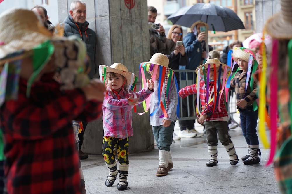 Euria gaurko protagonistetako bat bada ere, etxeko txikienek izan dute gaur protagonismo gehien. Orereta Ikastolako txikienak kalera irten dira, urteroko inauterietako desfile koloretsua egiteko. Euriak ohiko desfilea zapuztu badu ere, Koldo Mitxelena plazako arkupetan aritu dira dantzan, alai eta astebururako irrikaz.
