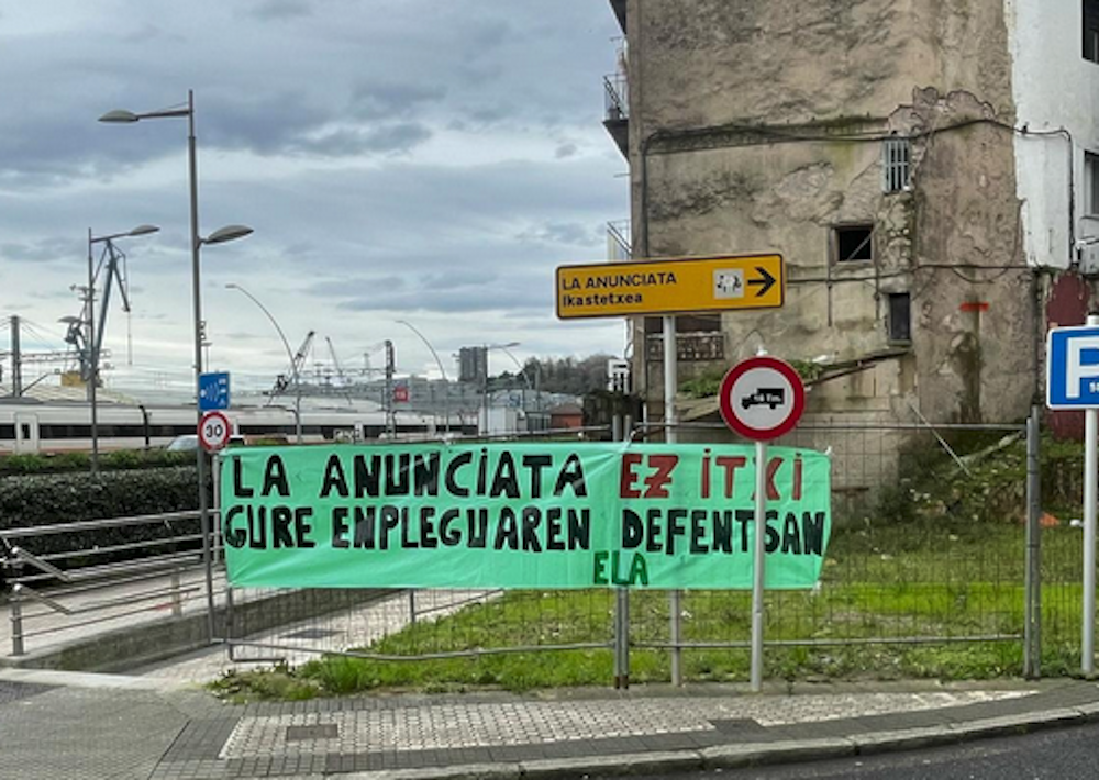 La Anunciatako langileei Antxo sarreran jarritako pankarta. Urtarrilaren 29an La Anunciata Antxo eta Donostia artean den ikastetxea itxiko zuela iragarri zuen haren titularra den Francisco Coll fundazioak. Ixtearen arrazoiak, bi nagusiki: ikasle falta, eta hezkuntza zentroaren eraikinek behar duten eraberritze lanei ezin aurre egitea. “Aldebakarreko erabaki horrek 30 langile ingururen lanpostuak kolokan jarri ditu”, adierazi dute La Anuciatako langileek publiko egin duten oharrean. Horregatik, mobilizazioak egingo dituzte. Lehena gaur (hilak 19, osteguna) izango da, 16:45ean manifestazioa egingo dutelako ikastetxearen sarreratik hasi eta Antxotik zehar. Hilaren 24 eta 26 artean hiru greba egun iragarri dituzte. “Gure lanpostu eta lan baldintzak defendatu eta ikastetxearen itxiera” salatu nahi dituzte. ELA sindikatuaren laguntza dute abiatuko duten borroka arorako.