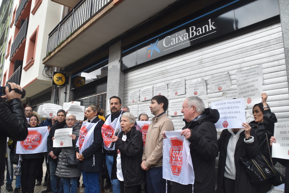 Zaurgarritasun egoeran dagoen familiaren etxegabetzea martxoaren 5erako iragarri dute, hori saihesteko dozenaka lagunek babesa eskaini diote familiari Caixabank egoitzaren aurrean egindako elkarretaratzean.